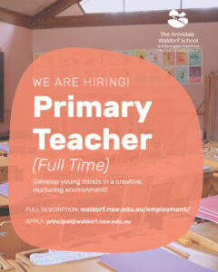 If you would like to know more about our school or jobs listed, please email our Principal, Zana Clarke (principal@waldorf.nsw.edu.au)
